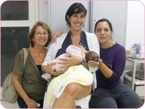 Dilza (avó materna), Giselle com Nina, Adriana Vieira (instrutora de yoga e doula)